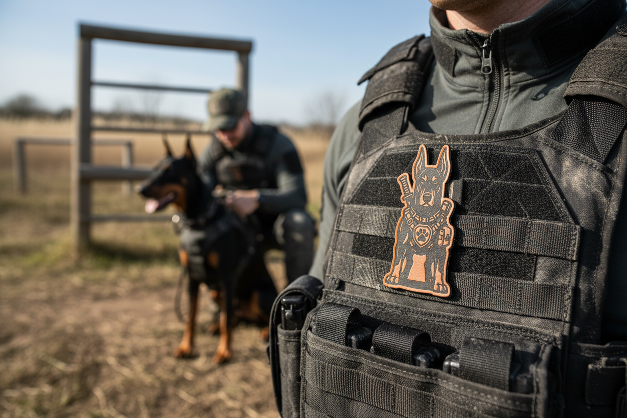 Tactical Doberman Dog Patch – Leatherette Morale Patch